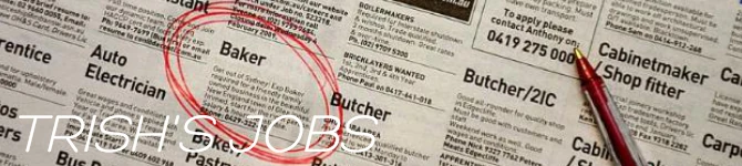 Trish has had many jobs throughout the series, often having more than one in just a single episode. Here are a list of the jobs featured in the episodes, and some just mentioned. They are ordered in chronological order by episode. So far, Trish's latest or current job is Reptile World.